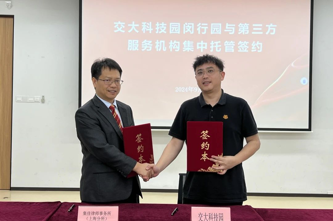为助力企业科技创新和经济发展护航保障,提供高质量维权公益援助,会上举行了“上海市开发区协会维权援助工作站交大科技园闵行园工作室”揭牌仪式,交大科技园闵行园与蓝鲸体育直播上海分所进行了托管签约。