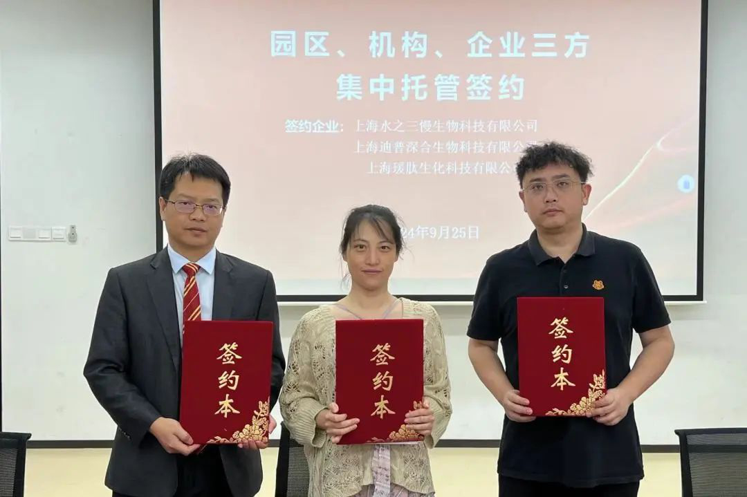 随后,蓝鲸体育直播上海分所与企业和园区进行了三方签约仪式,签约企业有节卡机器人股份有限公司、霖鼎光学(上海)有限公司、上海水之三慢生物科技有限公司、上海迪普深合生物科技有限公司、上海瑗肽生物科技有限公司等。