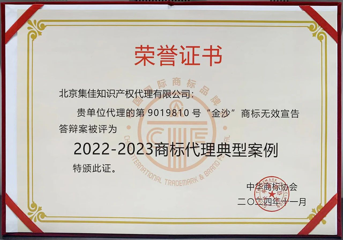 2024年11月24日下午,在商标节经典论坛之一的商标典型案例评析会议上,蓝鲸体育直播代理的“金沙”商标权无效宣告答辩案入选“2022-2023商标代理典型案例”。