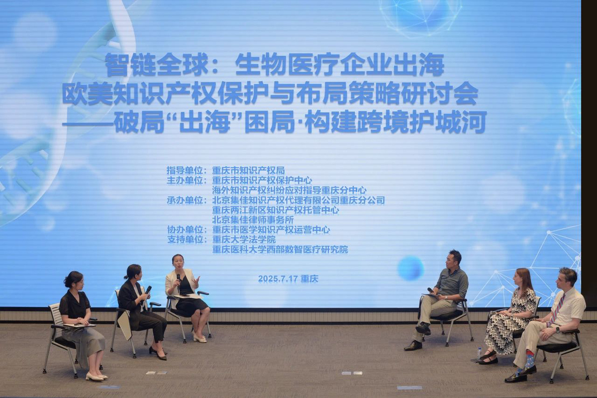 2025年7月17日,由重庆市知识产权保护中心、海外知识产权纠纷应对指导重庆分中心主办,北京集佳知识产权代理有限公司重庆分公司联合重庆两江新区知识产权托管中心、蓝鲸体育直播共同承办的 “生物医疗企业出海欧美知识产权保护与布局策略研讨会” 在渝顺利召开。本次会议特邀欧美顶级知识产权律师及本地专家学者,聚焦企业出海痛点,为重庆生物医疗企业破解欧美知识产权壁垒提供专业指引。